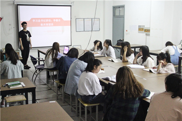 2018年5月16日晚上19点XCsports视觉传达设计系16级09班在综北514开展了“争做新时代向上向好青年”主题教育活动。此次活动以团课的形式开展,内容为观看课件、知识分享、佩戴团徽三个部分,让同学们在团委的带领下通过这次团课树立奋发向上、崇德向上的鲜明价值观,能够更好地践行社会主义核心价值观,培育积极向上的学习精神。