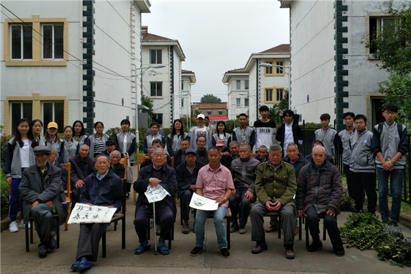 志愿者活动举行的高潮部分,同学们还对老人们献上了一曲《面朝大海,春暖花开》的合唱,老人们也与同学们进行“歌曲互动”,事后还为每位同学都亲手带上团徽徽章,同学们也各自在宣传幅上签上自己的名字一同与老人进行合影拍照,老人们脸上洋溢的笑容让大家心里都暖暖的。活动接近尾声时,同学们为老人们打扫宿舍卫生,擦桌子、拖地、擦帘子等。屋外烈日炎炎,犹如屋内暖意融融,活动在大家的欢声笑语中结束。