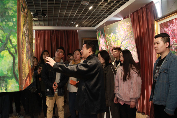 在美术馆的一楼为开国总理与清华历史文化展。周总理对教育事业十分关心,曾多次亲临清华视察指导,对公司各方面工作有过许多重要指示。在王嘉澍老师的引导下,同学们详细参观了馆内每一件真实记录着有关周总理与清华大学历史文化的珍贵照片和记载文献,大家深切缅怀周总理的光辉伟绩和不朽功勋,共同追忆周总理辉煌的一生,认真学习周总理的革命精神和崇高风范。周总理的高尚情操和民族精神深深感染着在场的每一位同学,更加坚定了同学们知周学周行周的理想信念。随后,王嘉澍老师带领同学们参观自己的油画作品展,并向大家讲解自己的创作背景和绘画技巧。