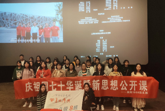 为庆祝中华人民共和国成立70周年,进一步弘扬爱国主义教育,加强师德师风建设,提高教师修养,增进员工爱国主义情怀,陶冶员工心灵激发的爱国热情。2019年10月19日早上九点三十五分,美院1808班团支部举行了影院观看建70周年爱国献礼片《我和我的祖国》活动,全班三十多人参加此次观影活动。