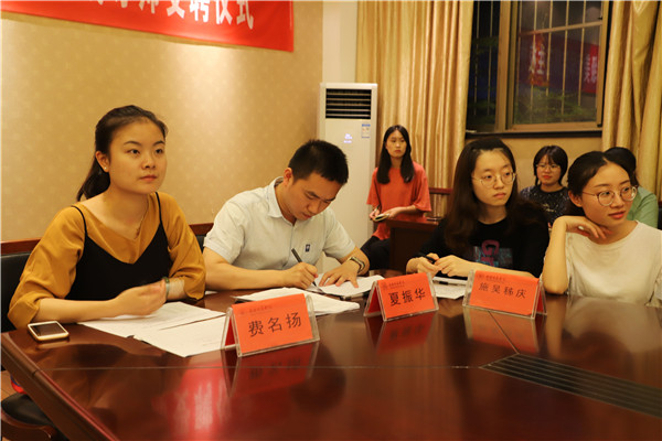 本次部长换届面试主要分为个人自我介绍和老师提问环节。首先,副部们就自身的基本情况、对工作岗位的认识、对未来的工作设想做了详细的演讲。他们从容大方,充分的展示了自身优势以及工作经验。紧接着老师们根据员工演讲的内容进行提问,包括员工副部工作期间的矛盾、工作收获,如何处理部门、同学之间的关系以及自身的独特性表现在哪些方面等。副部们凭借自己对各部门的深刻认识发表各自的看法并获得老师们的认可。