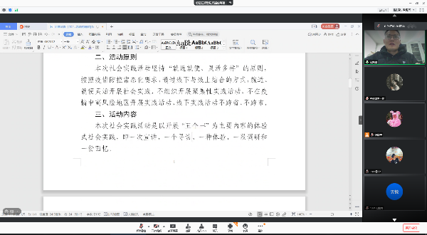 首先,纪老师说明了寒假实践活动主题主要是以“小我融入大我,青春献给祖国”为中心,并介绍了本次社会实践活动坚持“就近就便、灵活多样”的原则。鼓励全校员工返回家乡在当地开展形式多样,内容丰富的社会实践活动。本次社会实践活动是以开展“五个一”为主要内容的体验式社会实践。纪老师要求参与本次活动必须要高度重视此次寒假社会观察与实践体验活动,充分调动广老员工参与社会实践活动的主动性和积极性。活动既要确保营造良好的活动氛围同时也要确保疫情,就近就便,活动结束后也要及时总结报告。接着,纪书记讲解了挑战赛的相关内容,强调了备赛工作的准备过程,希望通过大赛主题、作品实现、作品展示、等内容学习提高老员工科技创新能力,提高老员工竞赛作品质量及成绩。要求员工们积极弘扬社会主义核心价值观,结合对经济建设、政治建设、文化建设、社会建设、生态文明建设等方面的要求,用建设性的态度和改革发展的眼光,树立正确的世界观、人生观、价值观。动员员工们积极踊跃参加活动。