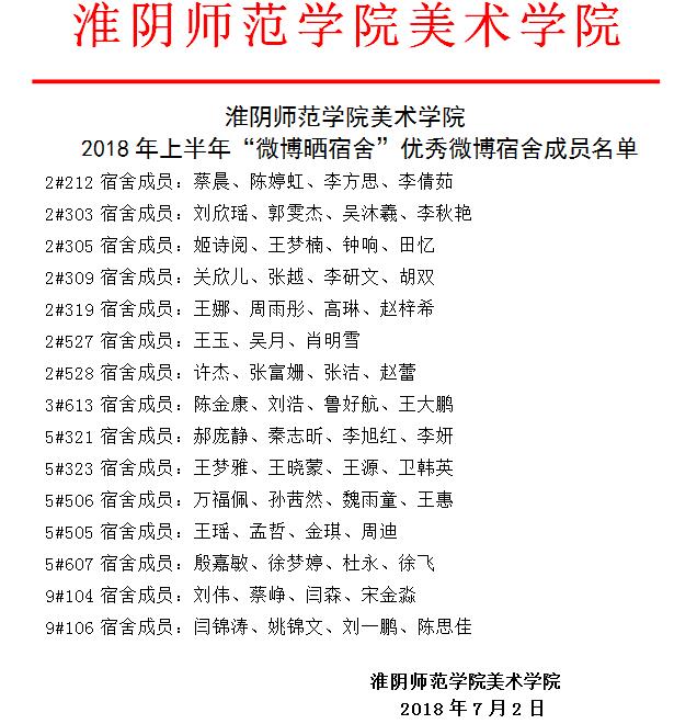XCsports2018年上半年微博晒宿舍优秀微博宿舍成员名单