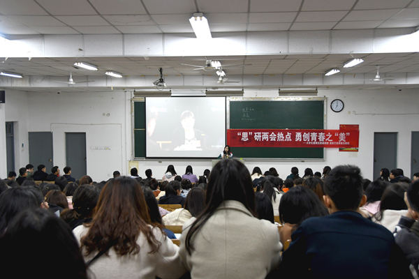 最后,学姐对同学们提出了几点希望:一是希望同学们能够提高认识、广泛深入地学习两会精神,前瞻性的了解国家政策和未来规划,努力提高知识与能力。二是希望同学们能够合理规划自己的人生,树立科学的民主和法治意识,将自身成长成才与祖国各项事业蓬勃发展紧密结合起来。三是希望同学们能够将两会精神与自身实际结合起来,深化自身素质养成,促进校园学风建设。