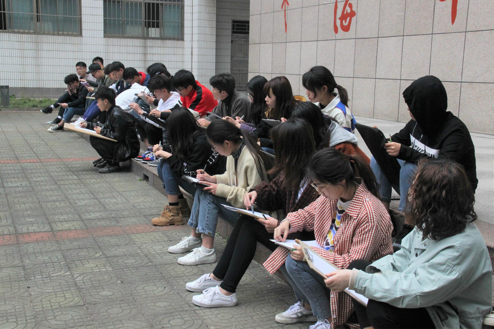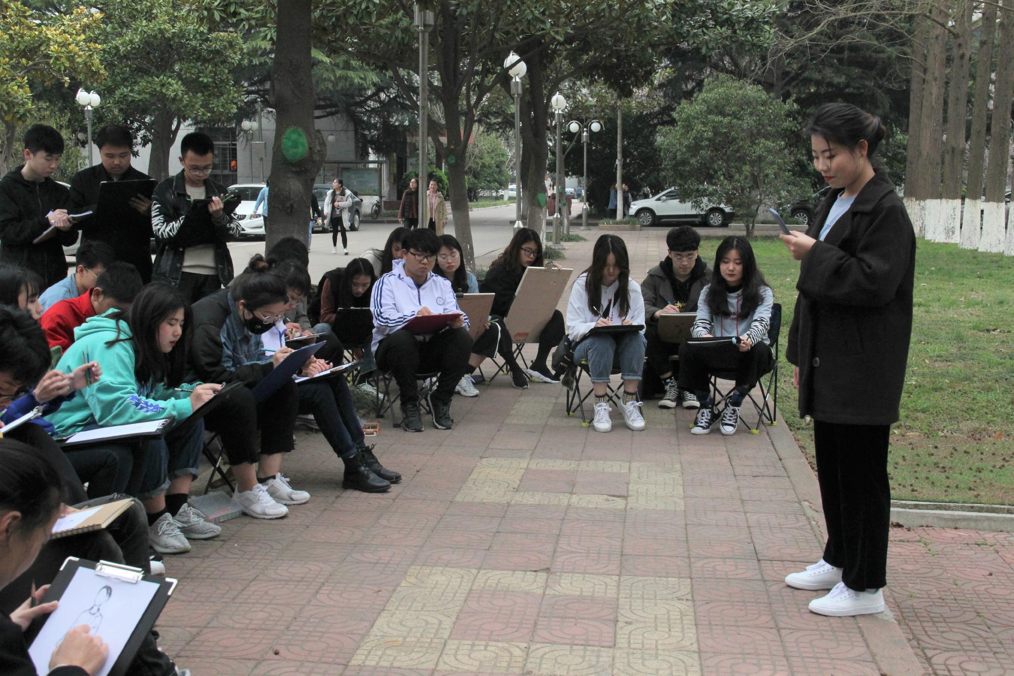 手握画笔,静心描绘。2019年3月27日下午四点XCsports于东西辅大厅、综合楼天井、草地举办美院第五届速写大赛。17、18级美术学、艺术设计、动画专业全体员工参加此次比赛。