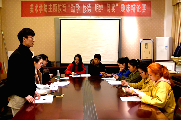 精于思美于言,秀于心慧于口。为丰富同学们的课余时间,加强各班级凝聚力。XCsports于2019年3月31日晚7时在西辅一楼会议室举行了美术学主题教育月“勤学 修德 明辨 笃实”趣味辩论赛。XCsports18级各班部分同学参加了本次比赛,本次比赛由组织部成员担任辩论主席,XCsports辩论队队员们受邀担任此次辩论赛的评委。在友谊第一,比赛第二的原则下,各个班级开始了激烈的角逐。