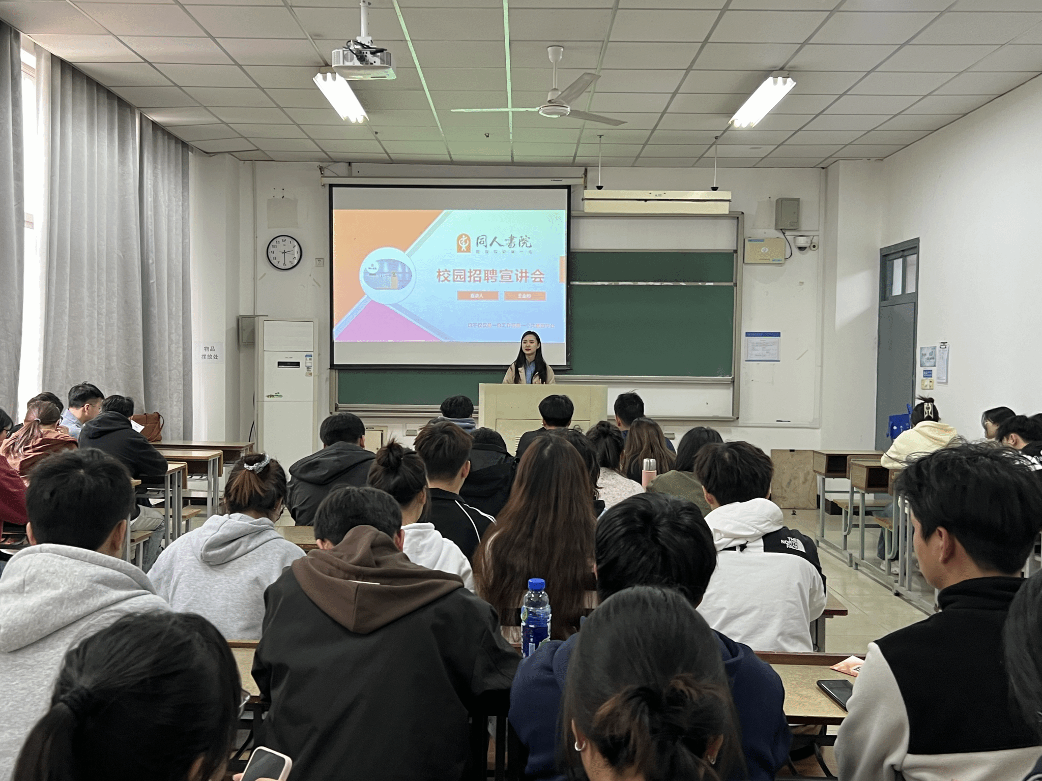 同人书院人事部主任王金如从公司概述、书院发展、团队力量、岗位需求、和福利待遇、求职技巧、作品集制作、教学方式等几个方面为同学们做了详细介绍,对同学们提出的问题进行答疑解惑,并为有就业意向的同学安排了预约面试。