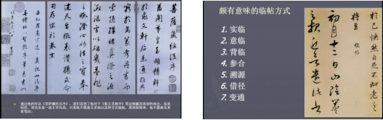 第一讲《妙在能合 神在能离——董其昌的书法临摹与创作》。金丹教授认为大多数书家学习书法是从集古字入手,到模拟古人风格,再到出帖的学习方法,董其昌则与常人有所不同,他有七种临帖方法:实临、意临、背临、参合、溯源、借经、变通。除了少时实临能几无遗恨以外,大都采用“临摹中有自己”的临帖方法。董其昌一方面强调“吾书无所不临”,“学书不从临古入,必堕恶道”;一方面又强调临书要“不为其笼罩,虽肖似不足称也” ,“临帖正不在形骸之似也”,董其昌的创造性临帖观形成了他自成一家的特色。金丹教授还总结了他的创作观:“创作中见古人”但又“妙处不在法”,要“自成家”,要“妙在能合,神在能离”,要 “顿悟”、要“生” 、要“淡”等创作思想。
