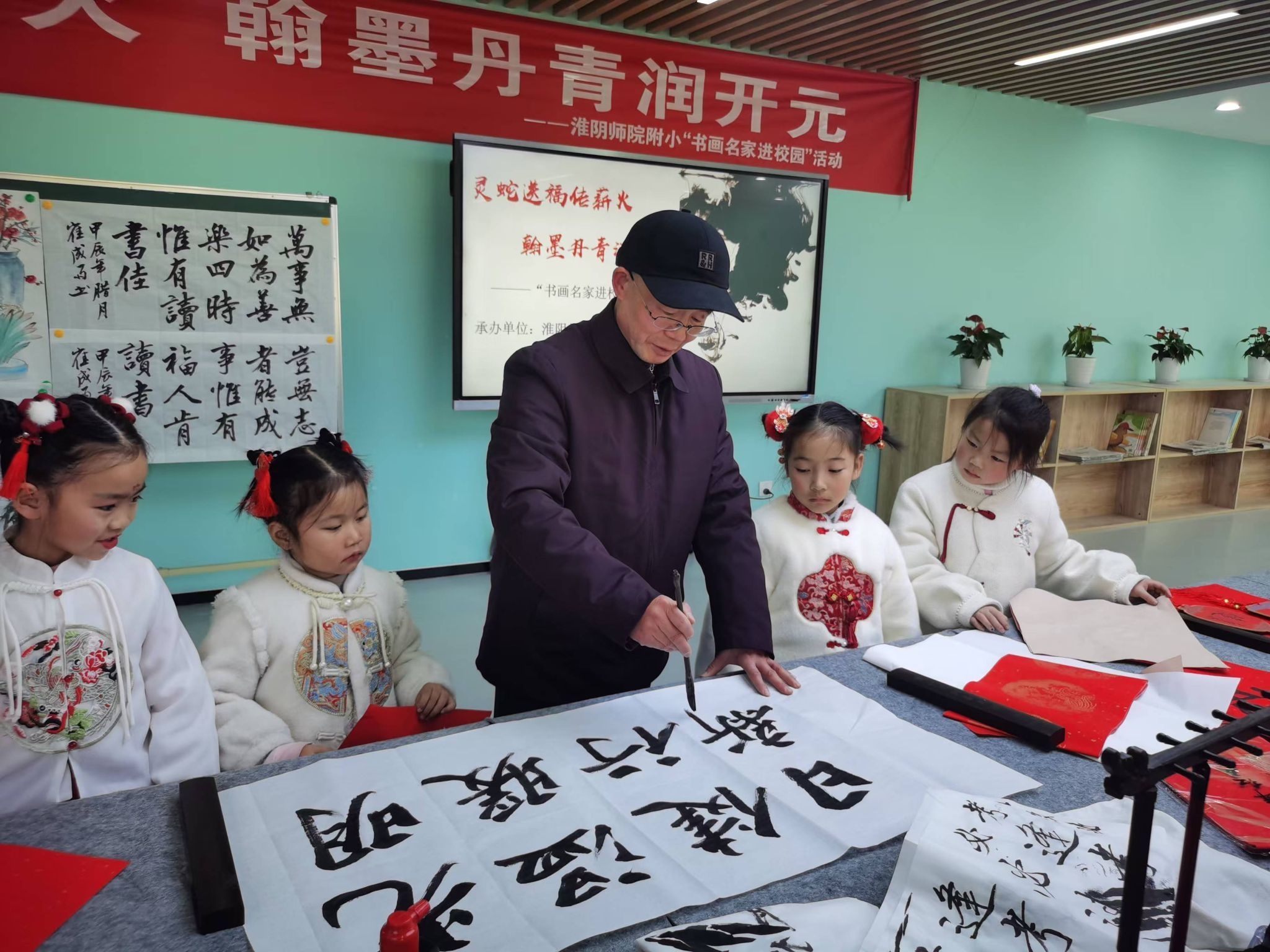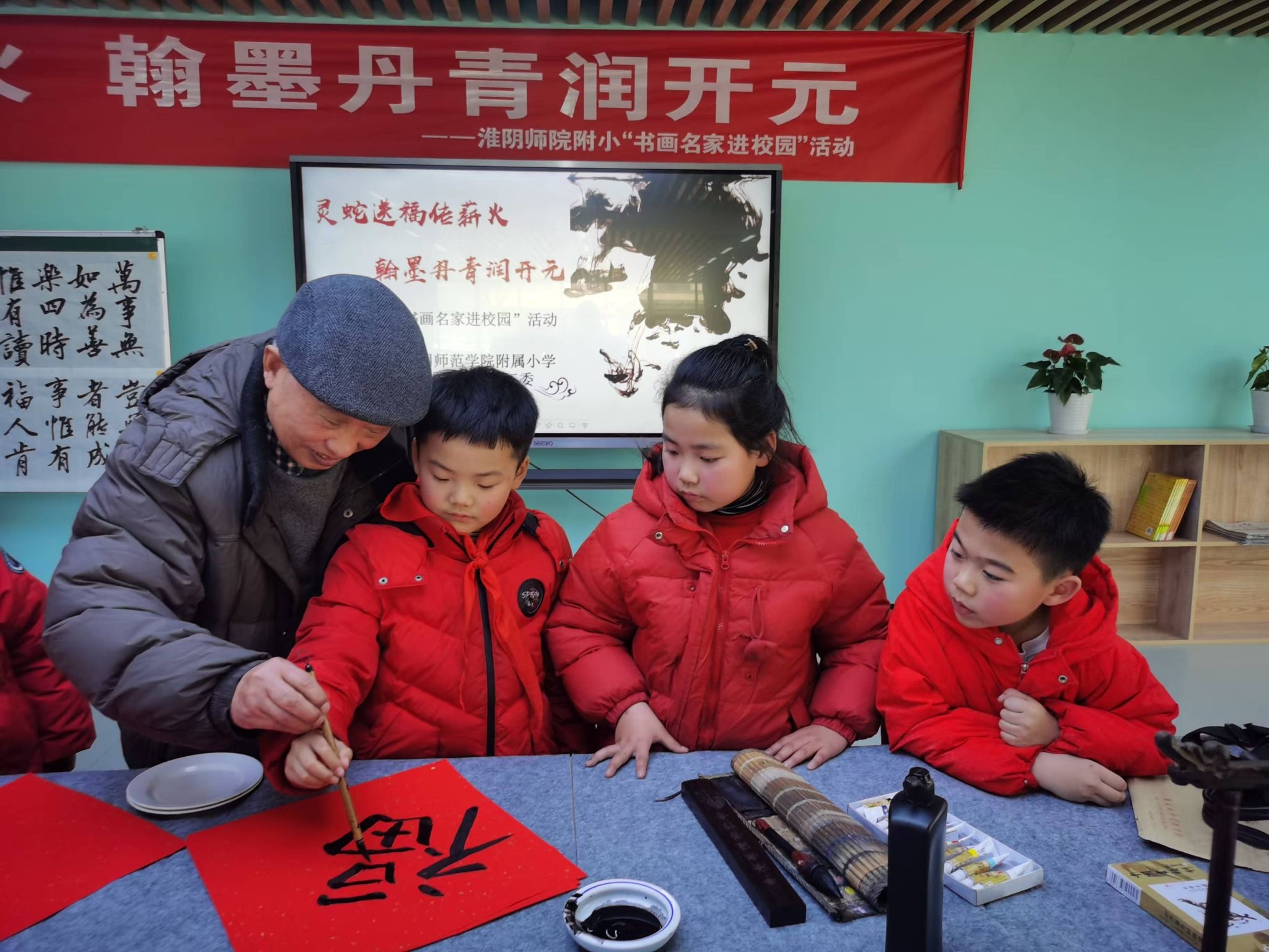 1月9日,XCsports关工委常务副主任陈士桂教授,关工委委员崔成雨副教授应邀走进淮阴师院附小新区实验公司开元校区,开展“灵蛇送福传薪火,老少共绘贺新年”书画名家进校园活动。