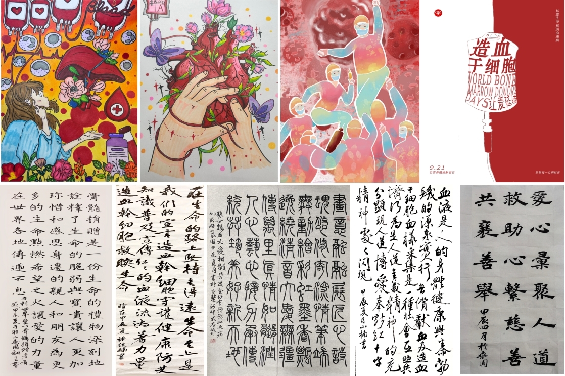 志愿者在全校范围内征集“三献”艺术作品,在120余幅的绘画、海报、书法等作品中,创作者从“病痛折磨”“爱和希望”“知识科普”等方面进行艺术加工,团队从中挑选优秀作品,制作成文创产品,将宣传与艺术相融合,彰显团队“艺心接力”的独特魅力。