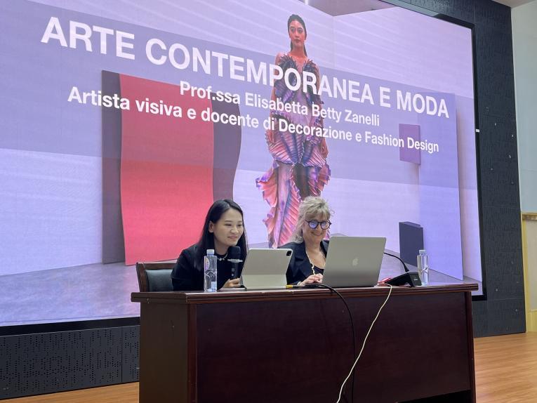 5月22日,在XC体育交通路校区逸夫报告厅,特邀意大利博洛尼亚XCsports服装设计主教授兼系主任、著名装饰学教授Elisabetta "Betty" Zanelli女士,为XCsports师生带来了题为“时尚与艺术的交汇:探索当代服装设计的边界”的精彩演讲。Zanelli教授不仅在服装设计领域享有盛誉,同时也是一位资深的装饰学专家。她的研究领域涵盖了视觉艺术与时尚设计的交融,自2012年以来,她策划并参与了众多表演、活动和时装秀,将理论与实践完美结合,展现了设计与艺术的无限可能性。