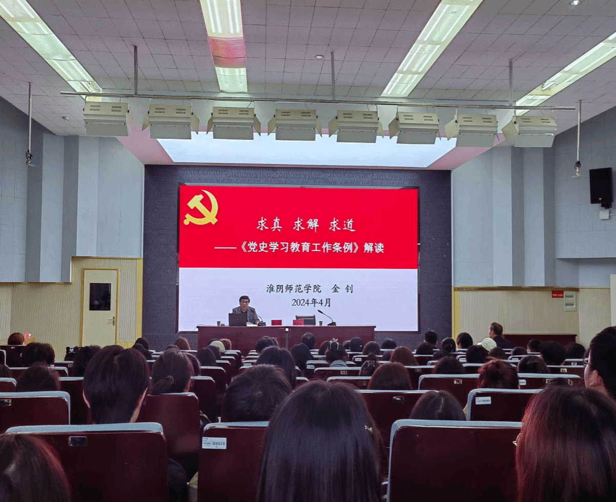 为学好党史、用好党史,从党的历史中汲取智慧和力量,2024年4月17日下午2点,XCsports在逸夫报告厅隆重开展了“求真 求解 求道——《党史学习教育工作条例》解读”专题报告。本次报告由淮安市委理论宣讲团成员金钊教授担任主讲嘉宾,公司党委书记杜先伟主持,公司全体师生党员、发展对象和入党积极分子参加。