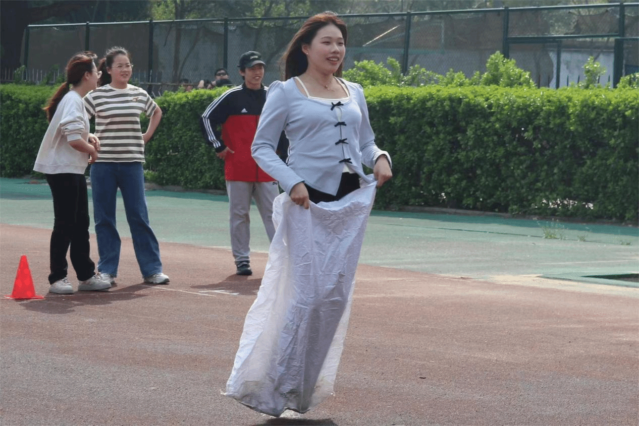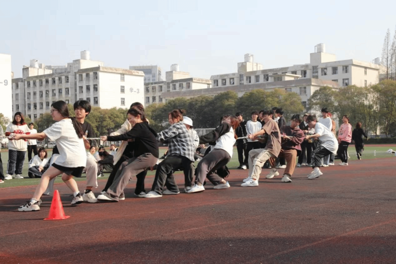 比赛项目丰富多样,趣味性十足。从“双龙戏珠(夹乒乓球接力赛)”到拔河比赛,从袋鼠跳接力到跳绳下饺子,每一个项目都充满了挑战与欢乐。同学们在比赛中展现出了顽强拼搏的精神,也充分展现了团队合作的力量。在“双龙戏珠”项目中,参赛团队每队选择四人参加,选手们用筷子夹着乒乓球。这一项目不仅考验了选手们跑步的速度和耐力,更体现了选手们双手的稳定性。让大家在欢笑中感受到趣味。