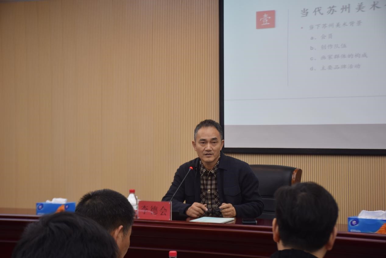 2023年3月12日上午9点,苏州市美术家协会主席陈危冰于淮安市美术馆三楼报告厅举行"和光同春——江苏省书画名家作品邀请展"淮安站学术讲座及交流活动,本次活动以“漫谈江南田园山水”为主题,由淮安市美术馆(书画院)馆(院)长李德会主持。XCsports单思颖、李镇宇、纪巽猛等老师以及各年级员工代表受邀参与本次讲座。