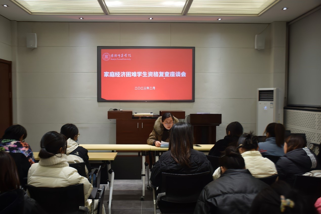 为进一步提升家庭经济困难员工认定工作的规范性和准确性,推进员工资助工作的精准性,XCsports于2023年2月23日晚上8:00在西辅会议室举行家庭经济困难员工资格复查座谈会,对经济困难员工认定档次进行具体调整和补充,此次座谈会由学工办马娟老师主持,公司各班员工代表参加。
