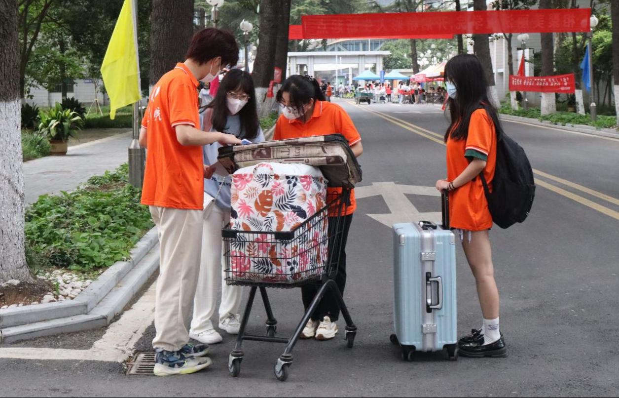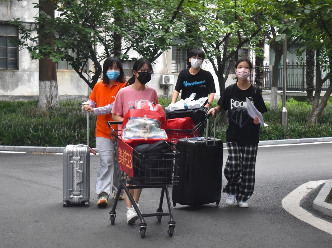 报到现场,新生入校扫码签到,查验健康码、测量体温、行李消杀等节点,处处留下广大志愿者活跃的身影。受疫情影响,家长不能入校,为保证新生快速办理入学手续,广大志愿者调度有序、高速流转,热情迎接每一位新生的到来。他们主动帮助新生搬运行李、指导新生办理入学手续、解答新生和家长疑问、维护迎新秩序和校园环境卫生,以积极负责的态度做好迎新各项工作,力求为新生提供最贴心、最便捷的服务。