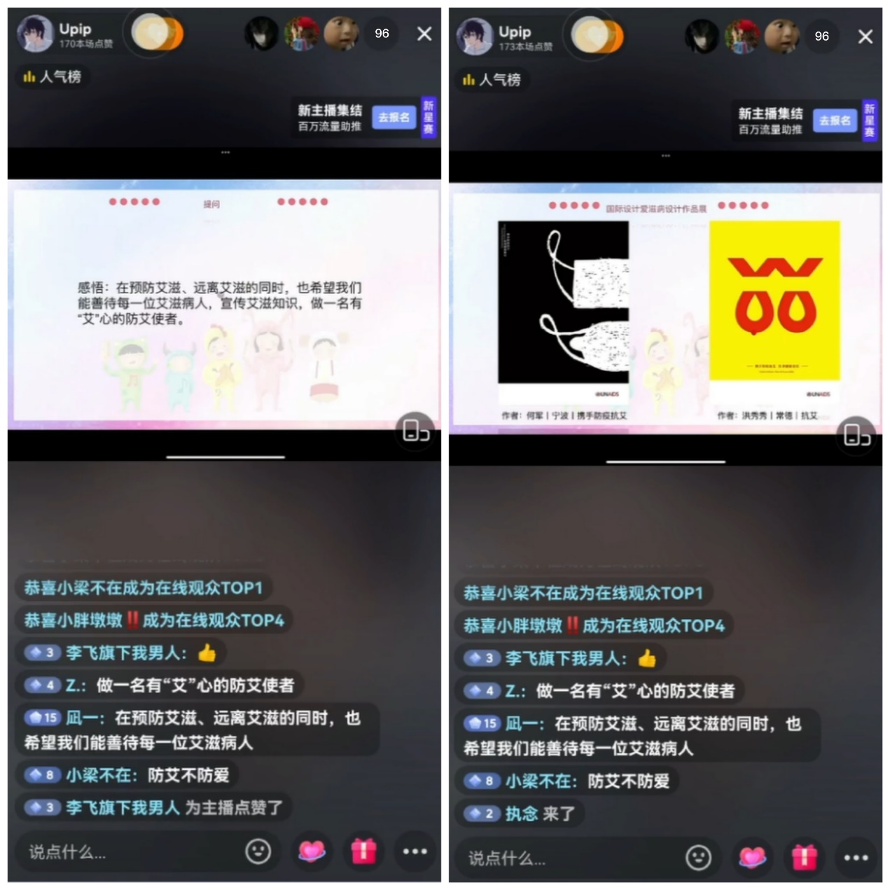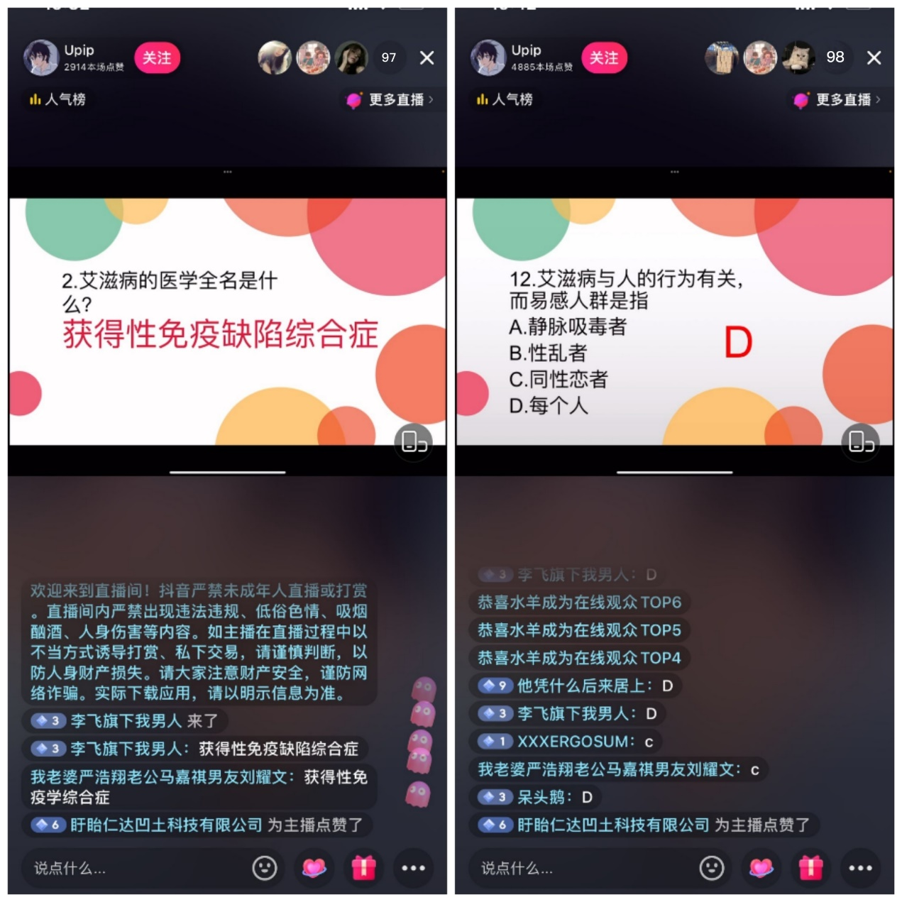 XCsports志愿服务团队分别于2022年7月10日、7月15日和7月20日在线上抖音直播平台开展“以艺抗艾,与爱同行”抖音“防艾知识”小课堂活动。
