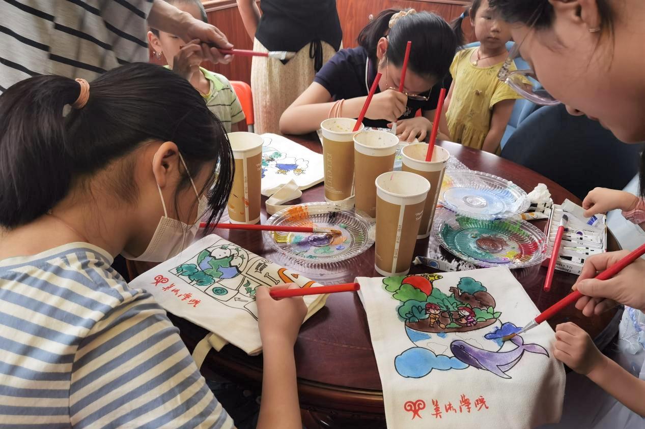 活动伊始,志愿者通过宣讲的形式向各位青少年科普环境保护、垃圾分类的相关知识。随后,志愿者将美院自制文创环保帆布袋融入课堂,让孩子们利用丙烯等工具进行二次创作,体会其中所蕴含的意义,从小树立良好的生态文明理念。同时,以独具匠心的艺术形式,使孩子们感受到学习环保知识的乐趣,大力提高孩子们的环保意识与创作能力。在志愿者们的耐心指导下,孩子们奇思妙想、大胆创新,顺利完成属于自己的作品。活动最后,志愿者们对本次课程进行总结,并一同进行拍照留念。