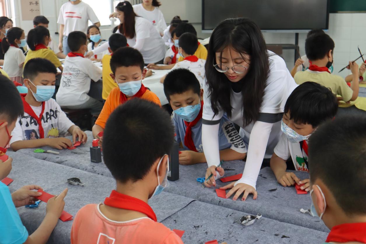 此次志愿服务活动形式多样,志愿者们将剪纸、书法、国画等传统文化引入到乡村课堂,让孩子们对中华传统文化得到更深刻的了解,明确理解其中所蕴含的意义,提升当地员工的综合素质,将传统文化深深“种”进了孩子们的心田。同时,以独具匠心的艺术形式,使孩子们感受到学习艺术课程的乐趣,大力提升孩子们的审美能力与创新能力。活动过程中,美院志愿者以小组的形式分别教学,以课堂互动、示范教学、作品展览、手工作业等形式相结合,让孩子们领略非物质文化遗产和传统文化艺术的魅力。在志愿者们的耐心指导下,孩子们发挥自己的动手能力,顺利完成属于自己的作品。活动最后,志愿者们对本次课程进行总结,对小朋友们的作品进行表扬与鼓励,并进行拍照留念,让此次志愿服务活动在一片欢声笑语中结束。