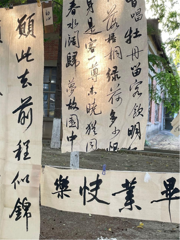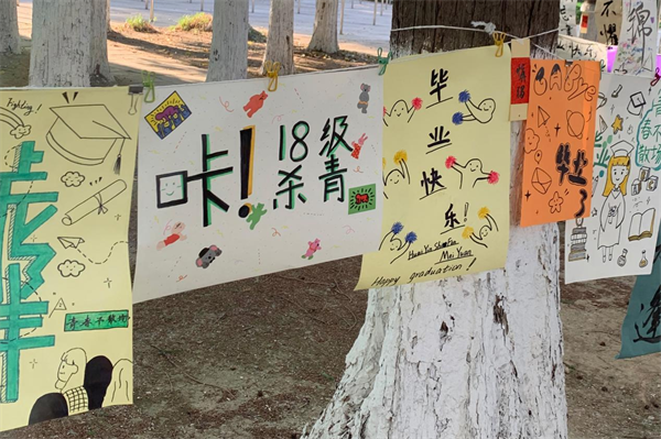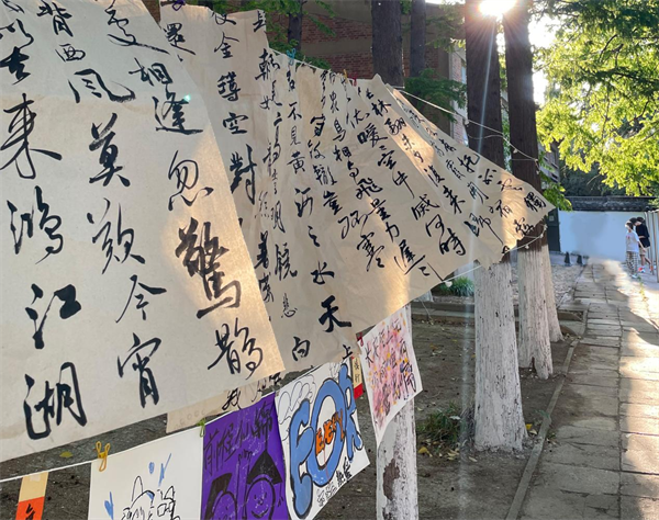 步入水杉林,最先映入眼帘的便是一幅幅充盈着古典书香气息的书法作品以及同学们的留言与祝福,在酷热的季节里送来一缕清凉与宁静之感,细细观察更是妙趣横生,不仅提高了书法创作水平、丰富同学们文化生活,还为毕业生提供了一个交流情感的机会,更为公司增添一道靓丽的风景线。利用本次书画寄语展为毕业生们搭建了一个“重走淮师路”的活动平台,重新看遍淮师校园,在校园的最后时光回顾曾经的青春和过往,体会自己在大学里的昔日美好,希冀以更加饱满、自信的心态走向另一段全新的征程。
