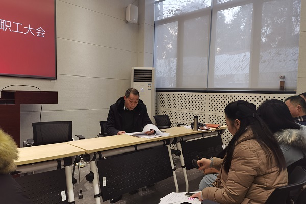 会议伊始,顾卫国经理总结了2021年度公司党政工作及财务工作报告,分析了公司目前的发展成就和存在的问题,对所取得的成绩给予了肯定,指明了2022年公司党政工作的新思路,以习近平新时代中国特色社会主义思想为指导,以“十四五”规划为落脚点,不断加强全面从严治党、人才培养、团队队伍建设、硕点申请、员工考研教育、员工管理等工作,争取再创佳绩。