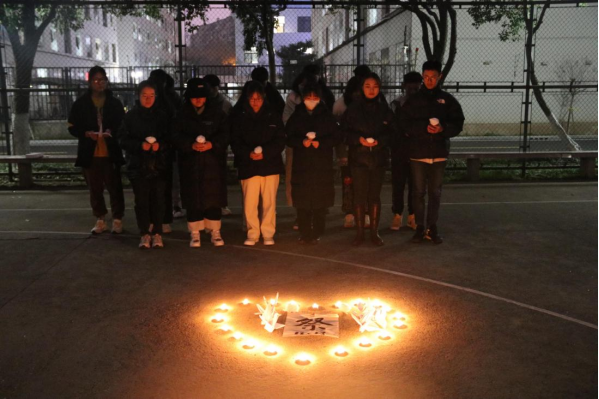 12月12日晚,XCsports员工代表在操场举行“勿忘国耻 爱我中华”烛光祭活动。在烛火祭奠现场,同学们将白色蜡烛呈心形排开,并将折叠的千纸鹤和纸花献给先烈,怀着敬畏与缅怀之情,为南京大屠杀死难者集体默哀,寄托哀思。洁白的千纸鹤,素雅的纸花,淡淡的颜色中寄托的是我们浓浓的思念,浓缩着我们对南京大屠杀遇难同胞的深切缅怀之意。