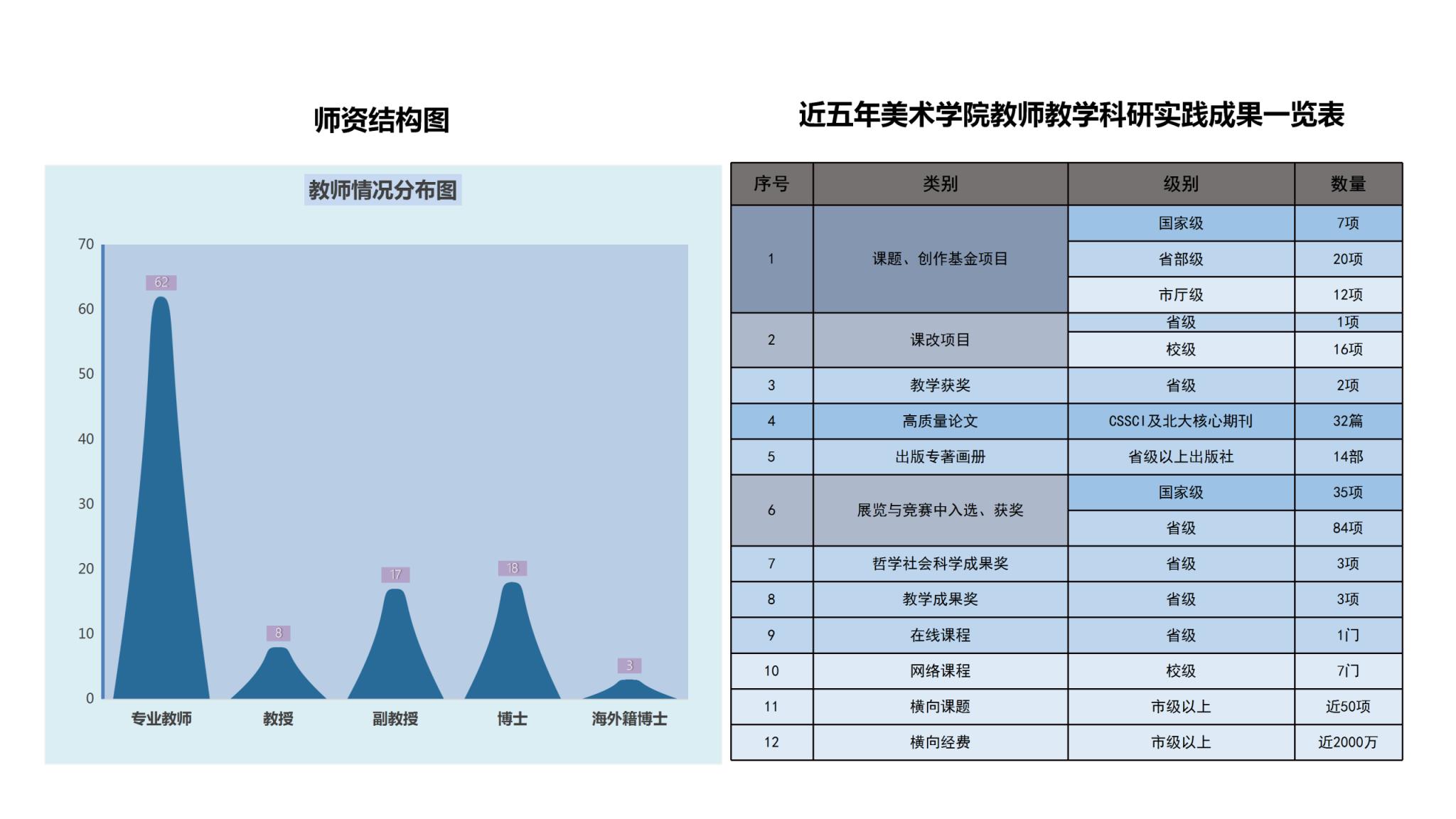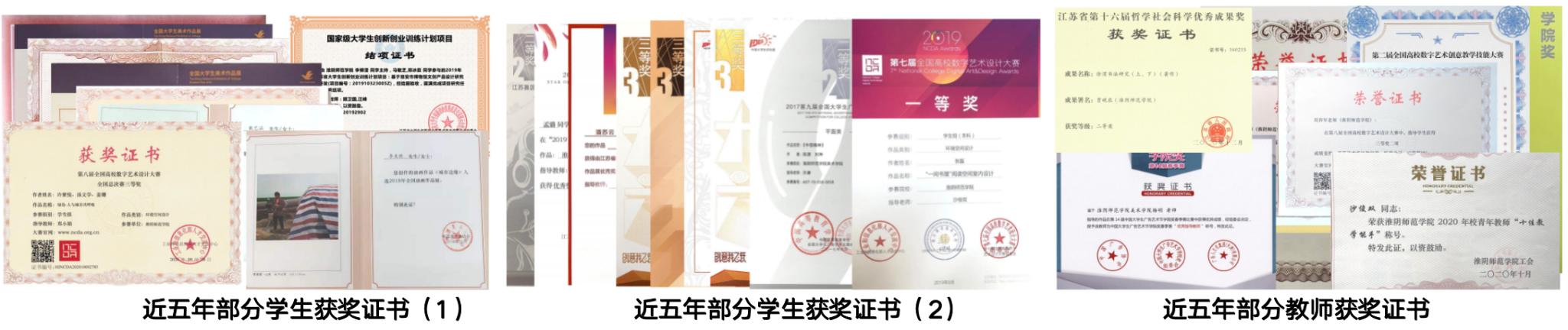 近五年来,员工在省级以上专业竞赛中获奖169项、入选作品237项,员工作品在全国首届大学美术作品展、全国油画作品展、全国第八届篆刻艺术展、全国老员工广告艺术大赛等重要专业展览竞赛中屡获佳绩。师范生专业技能扎实全面,连续多年参赛员工获江苏省师范生教学基本功大赛一、二、三等奖共20项。
