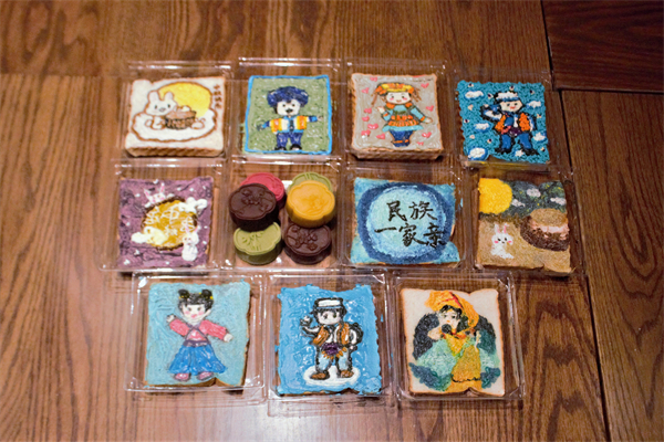 活动伊始,同学们依次进行自我介绍,并围绕自己家乡的传统饮食民俗等话题畅所欲言,活动现场气氛温馨活跃。接下来张老师和吴老师带领同学们进行了手绘面包片创作,绘制出具有民族特色的人物形象和中秋图案,分享不同民族的中秋习俗,充分展现出民族特色与中秋氛围。随后同学们还共同制作了月饼,将自己的美好祝福融入进一个个精美的月饼中,过程既新颖又充满意义,最后呈现出五彩缤纷的精致月饼,让同学们体验了制作月饼的欢乐氛围,表达对中秋的美好愿景。创作结束后,同学们拍照留念,感受着来自公司的关心与温暖,并向家人和亲朋好友传递自己的中秋祝福。