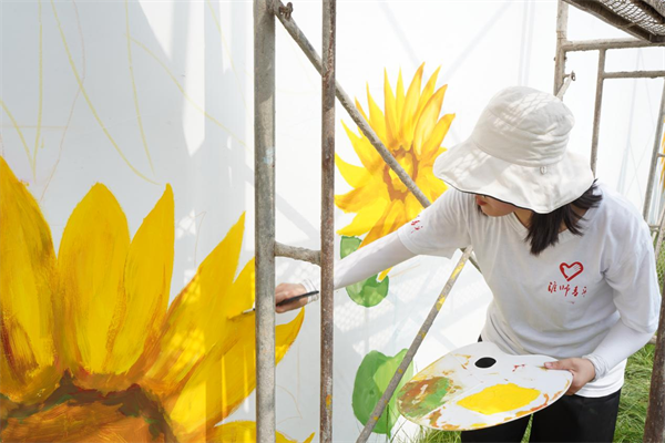 为推动农村精神文明建设,丰富乡村文化,XCsports在淮安区苏嘴镇大胡村开展了墙绘工作。七月酷暑,烈日炎炎,同学们每天早起晚归,顶着高温,一笔一划勾勒着线条。在绘画过程中,他们表现出了极高的积极性与绘画的专业水准,专注着墙绘,一刻也没有松懈。每天墙绘工作结束时,队员们的脸上、衣服上、鞋上都沾染了五颜六色的油彩,皮肤被晒得通红,但是他们都没有一丝的抱怨。