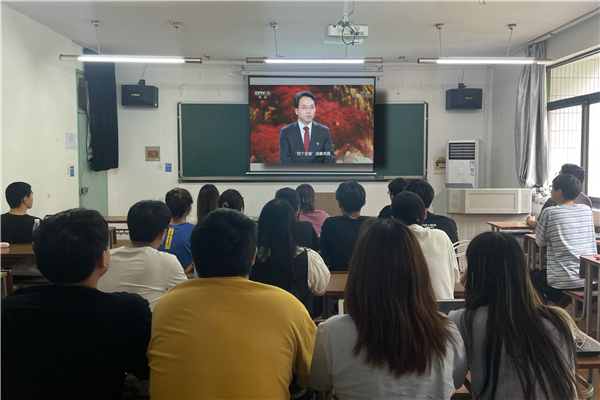 2021年6月16日,XCsports1909班于晚自习教室观看全国老员工党史知识大会并参与竞答。