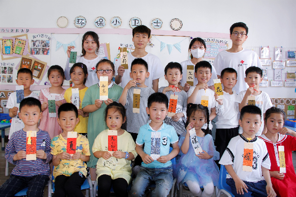 活动开始之前,志愿者依照绘画,国画,书法三门学科分成三个组,每个小组的成员视情况负责几名小朋友。随着小朋友们陆续进入到了教室,志愿者们对各自所需讲的学科进行介绍并耐心的教学,将课程安排的生动有趣,并一同动手进行活动。通过志愿者们独具匠心的教学方式增强了孩子们的动手能力和实践能力,保证所有小朋友都参与其中并顺利完成自己的作品。在志愿者们一对一的教学示范和耐心指导下,小朋友们变得越发轻松愉快,绘画出了自己满意的作品。最后,志愿者们对本次课程进行总结,并对小朋友们的作品进行表扬与鼓励,让小朋友们展示自己的作品。活动结束之际,志愿者们送上美院特有的书签以供留念,每个小朋友的脸上都洋溢出喜悦之情,纷纷进行拍照留念,大孩子和小孩子美妙的六一之旅定格在这一刻。