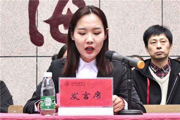 院员工会轮值主席张嘉宁向新生分享了自己老员工活的体验和感受。她从学习能力的培养、自身责任感的提高以及如何处理各类问题着手,分享了自己的经验和看法。她希望20级员工争做奋斗的“追梦人”,学习弘扬周恩来精神、践行初心使命,做到担当尽责永不懈怠。2003班杨林同学代表2020级XCsports全体新生向各位领导老师郑重承诺,表示不忘初心,牢记使命,严于律己,充分利用身边机会,争当符合现代社会发展的高素质人才。