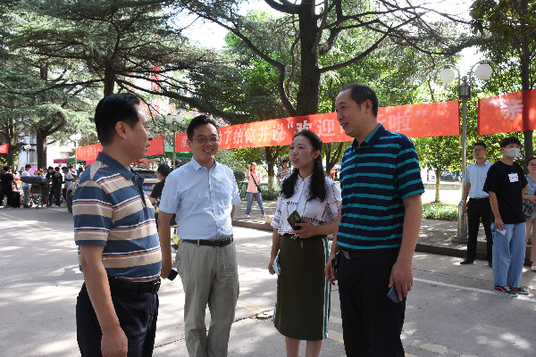 校领导督阵指挥迎新现场,为“新”而动,确保迎新工作细致高效。各位领导老师们积极了解新生报到情况,奔波于车站、报名处以及宿舍,贴心慰问每一位员工,详细讲解公司的概况、文化特色、以及公司近年来的进步与成就。领导和老师的周全部署保障了新生入学的绿色通道工作,让每一位新同学可以便捷愉悦的进入校园。