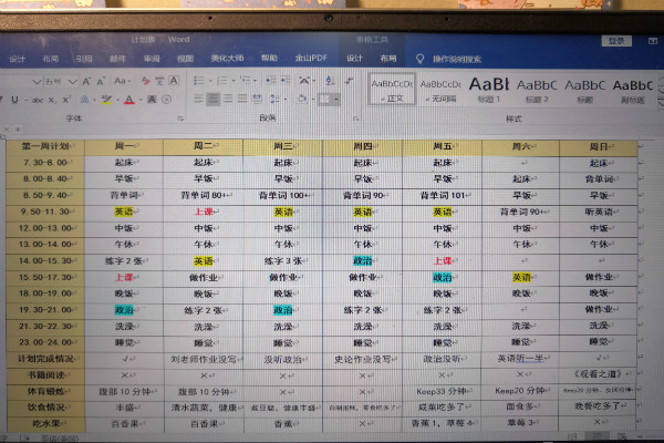即使在假期,她也不会疏忽身体健康,因为一个好的身体才是努力学习的保证。她每周在keep上运动五天,每次运动不低于20分钟。每天都喝至少四杯水,坚持吃水果。