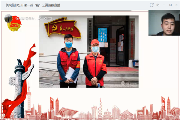 青年者,人生之华也。徐曦颖身为抗“疫”前线的一员,与同学们分享他的防疫经历。徐曦颖与他的父亲一起成为防疫战线上父子兵,像他们这样的家庭搭档,社区内有12对,他们有夫妻、有母子、有父子、有妯娌、有兄弟、甚至还有一家三口齐上阵的。在这场没有硝烟的战争中,他们更是战友,千千万万的“他们”舍小家为大家,奋战在疫情防控的第一线。他们是战“疫”场上的最美搭档。徐曦颖认为,我们青年在这个关键时刻更要运用好“不忘初心、牢记使命”主题教育的成果,树立“四个自信”、做到“两个维护”,我们青年要站在防控疫情斗争的第一线,关键时刻挺身而出,不畏艰险,顽强拼搏。
