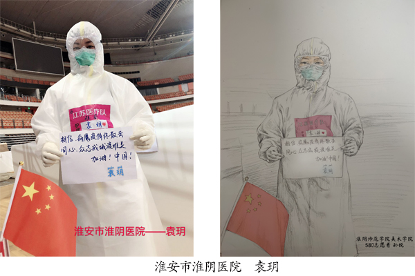 一群群白衣天使在疫情危急时刻冲锋在前,为生命坚守,为使命而战,她们用最美的逆行构筑了安全防线。面对这场战“疫”,美院学子以拳拳之心、殷殷之情,通过素描、彩绘、国画、AI手绘等艺术形式为淮安援助湖北医疗队的30名医护人员绘制肖像,他们用美术作品凝聚起万众一心、众志成城、全力以赴、共克时艰的强大正能量,坚定“坚决打赢疫情防控阻击战”的必胜信心,通过特殊的形式向日夜奋战在疫情防控一线的巾帼英雄们献上了特殊的节日礼物。