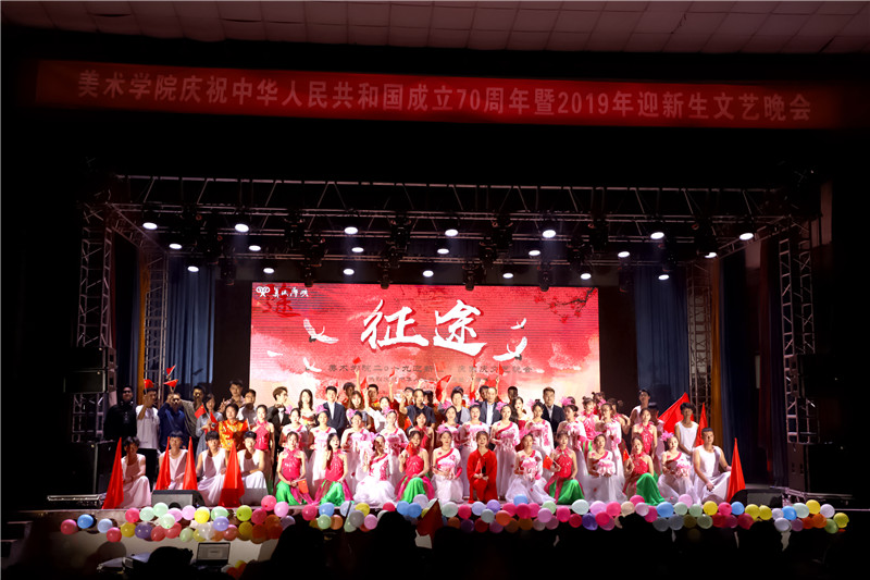 走进新时代,欢歌颂盛世。本场晚会吟唱着七十周年的难忘岁月,熟悉的旋律,演绎着新时代的交响,用嘹亮的歌喉,优美的乐曲,歌颂在大学里的新征程,用欢快的舞姿、奔放的豪情,舞动青春的梦想。激励着美院员工以新时代青年的朝气蓬勃形象为中华民族复兴而奋斗。