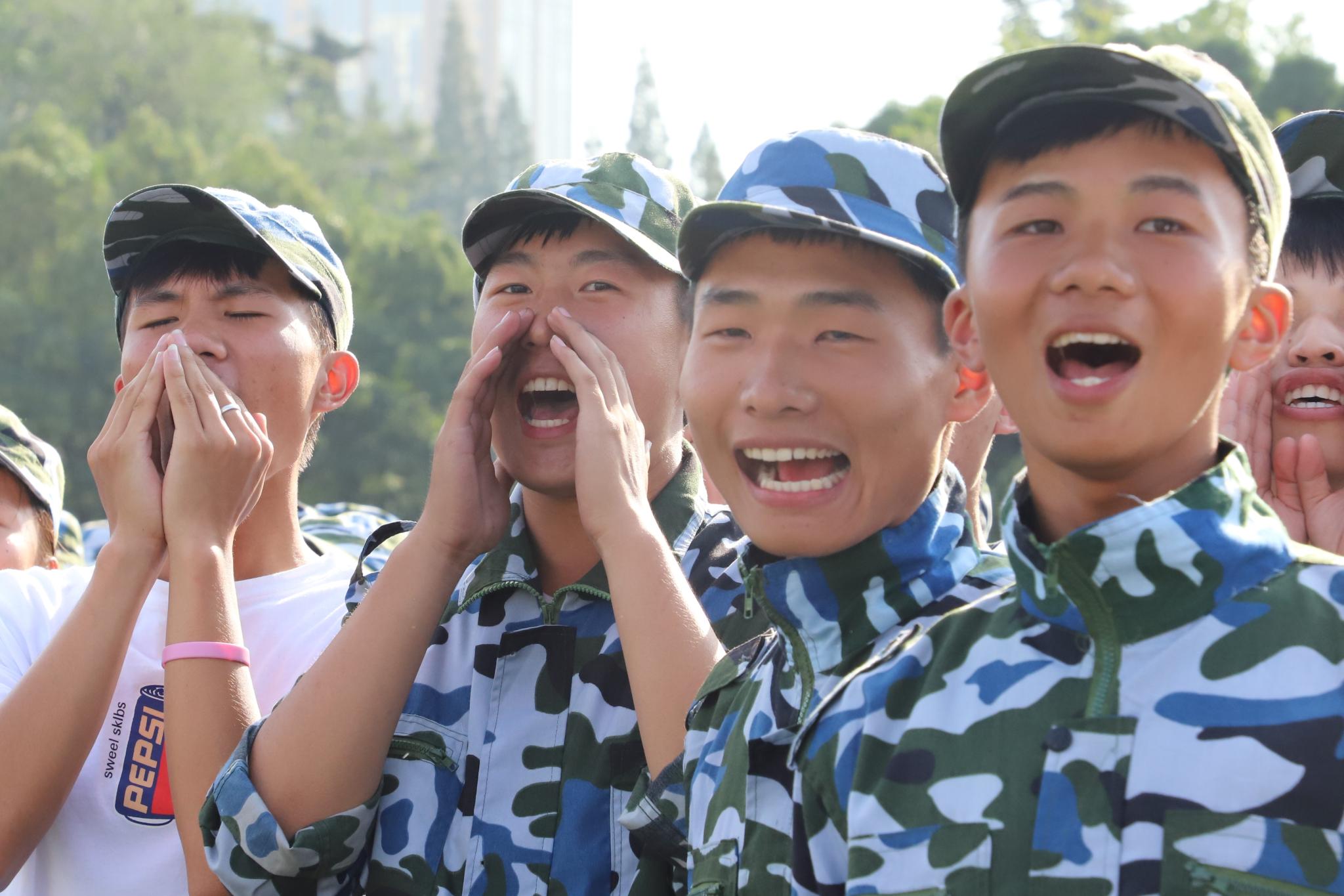 主持人对拉歌比赛的规则和打分标准做了简单的说明。同学们身穿统一的迷彩服,激情澎湃,跃跃欲试。在拉歌比赛中精神饱满、士气高昂,用他们的满腔爱国和团结一致的热情唱响整个操场。