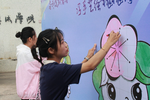 XCsports特以淮师吉祥物“槐槐”和“诗诗”手绘为亮点,在工作人员和志愿者的引导下上好手绘启蒙第一课,用镜头记录他们的第一节大学手绘课。西辅楼门口两侧摆放着历届优秀毕业生的照片和事迹被制作成的条幅板,给新生树立榜样和学习目标。公司特别设立员工党员示范点,优秀党员热情的迎接新生,以服务展现公司的风采。相信能够勉励新生在大学岁月里不负韶光,展现青春。