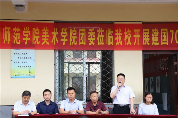 6月29日上午,XCsports师生实践团到达石祖嘉希望小学,受到桂塘支部书记干家欢、中心小学董事长刘云飞、石祖嘉希望小学董事长陈俊林以及该小学师生的热情接待。XCsports实践团在淮安市美术家协会顾问、XCsports关工委副主任陈士桂教授和XCsports团委老师的带领下与桂塘支部书记干家欢、中心小学董事长刘云飞、石祖嘉希望小学董事长陈俊林于石祖嘉希望小学内举行了淮阴师范XCsports暑期“三下乡”社会实践活动启动仪式。