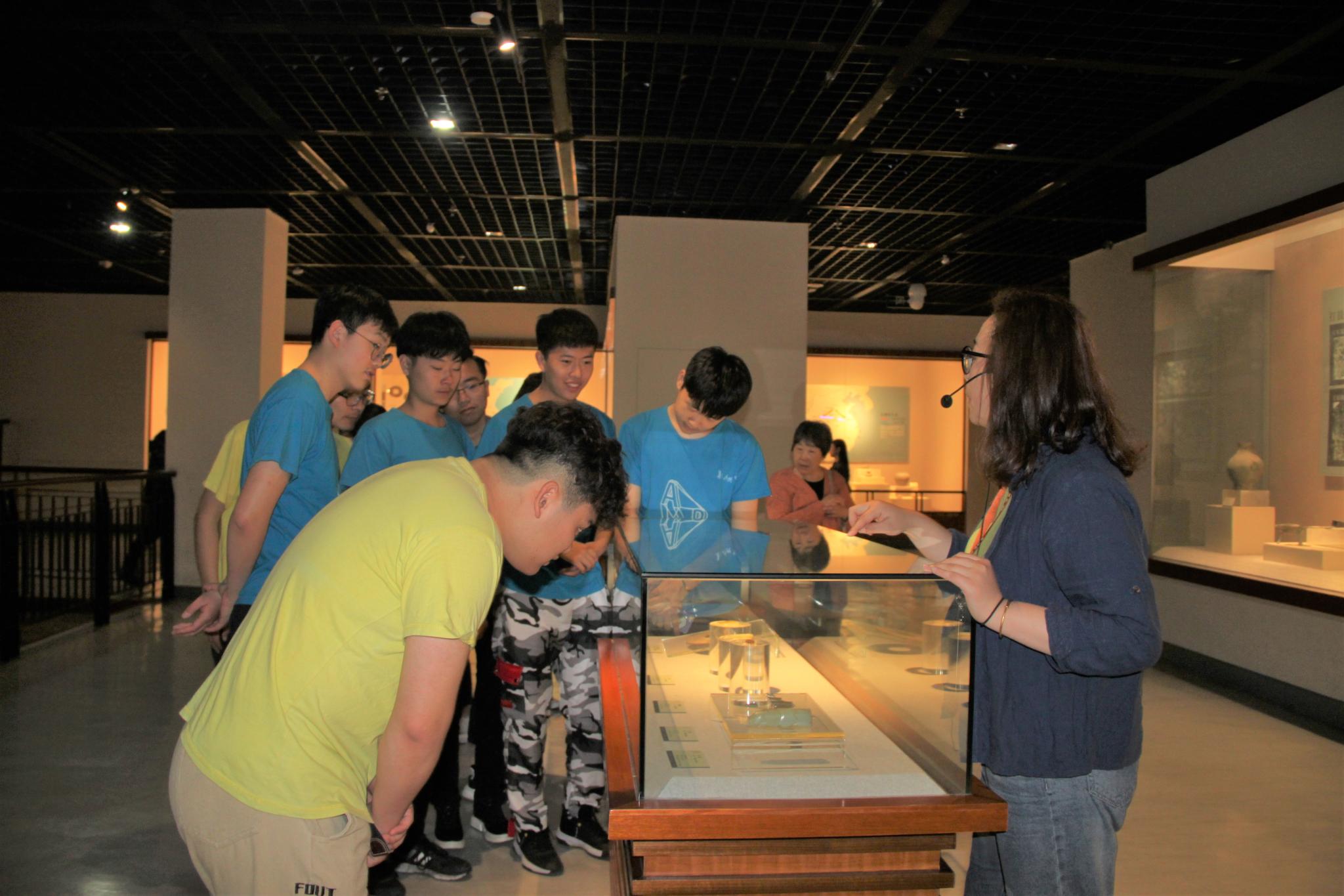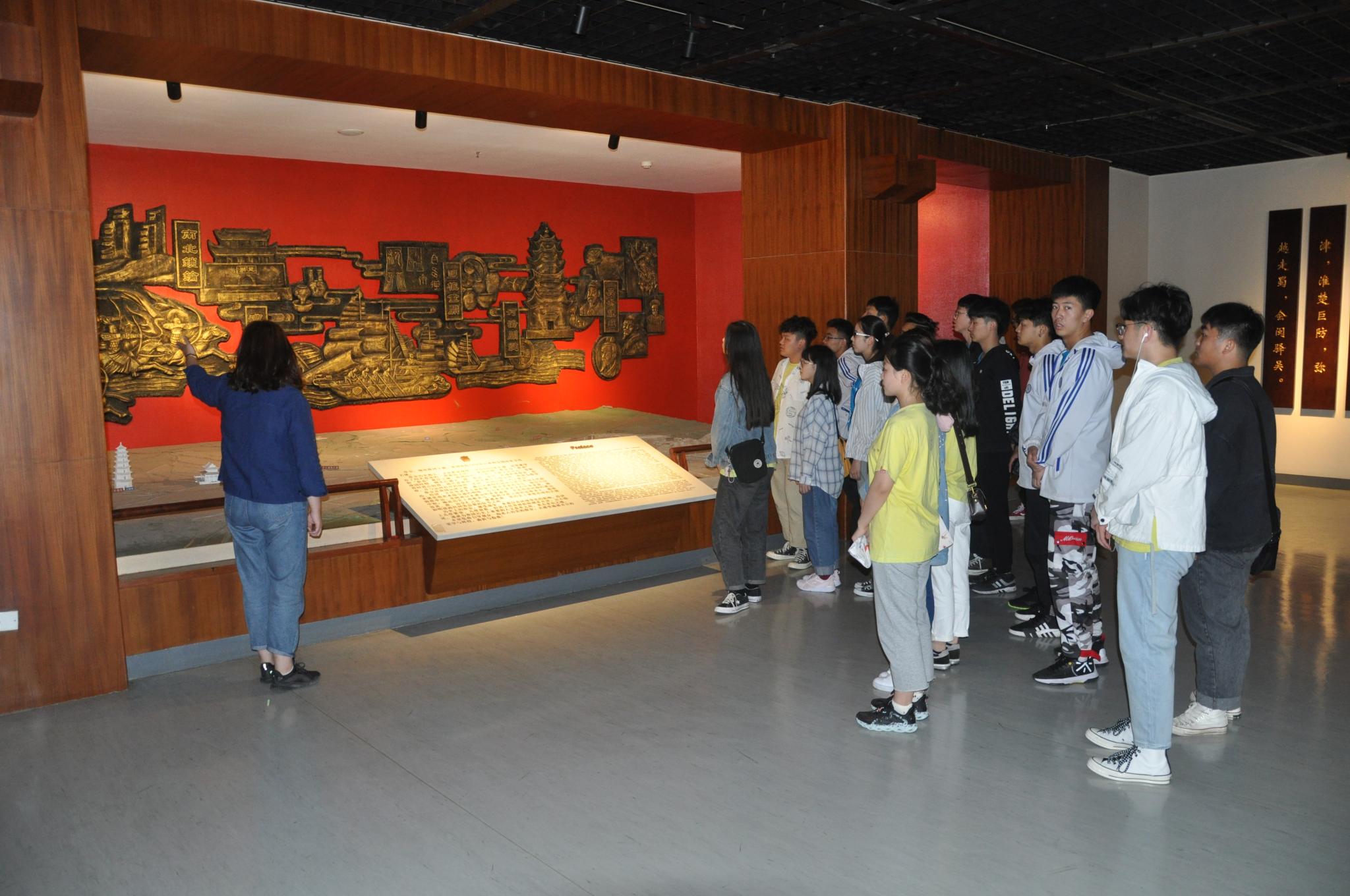 博物馆是一个城市的眼睛,从中能看到城市的灵魂,它不仅承担着城市历史文化的教育职能,同时也是城市历史文化的名片。活动开始前,由淮安市博物馆讲解员带领同学们参观淮安市博物馆,讲解员向同学们介绍道,淮安作为淮河和京杭大运河的交汇,是南北兵家必争之地,再加河道水患的影响,市名即取“淮水安澜,淮水永安”之意。淮安市博物馆以《国家历史文化名城—淮安》大型基本陈列为特色,展览分为“人文初开、楚韵汉风、南北锁钥、漕运中枢、 盐榷重关、河务关键、英杰辈出”七个单元,文物丰富、史料翔实,彰显地方文化底蕴。同时还有 《谢冰岩书法艺术馆》、《谢铁骊电影艺术馆》、《徐伯璞捐赠书画陈列馆》、《曹子芳捐赠书画陈列馆》、 《观众互动馆》五个不同的专题展馆,面对着一幅幅书画作品,同学们认真的聆听着讲解员的解说,屏气凝神的观摩学习着。通过参观淮安市博物馆,大家无一不被淮安深厚的历史文化底蕴和悠久灿烂的历史文化魅力所征服。