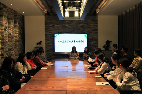 会议伊始,顾明明老师就为什么要考研以及如何考研等问题做了详细地讲解。顾明明老师讲解道:考研一方面是为了就业,同时为自己更好的发展打下基础。接着,顾明明老师提醒同学们一定要建立好完整的基础知识体系,针对考试的类型作出相关的指导,并结合自己的经验给参加考研的同学指明了未来方向,同时建议同学们可以通过微博等网络平台了解考研相关信息,顾老师结合自己的相关经验建议同学们在选择了心仪公司之后,可以专门前往心仪公司前去学习它们作品的风格和特点。随后,顾明明老师就如何择校选专业、如何准备研究生各阶段考试、如何安排学习时间提出很多很好的建议。最后,同学们就自己在考研准备过程中遇到的问题向顾老师提出了自己的疑虑,顾老师对同学们提出的问题作出了详细全面的解答。