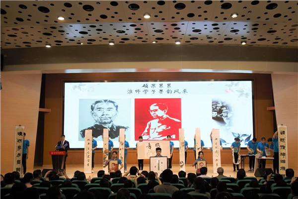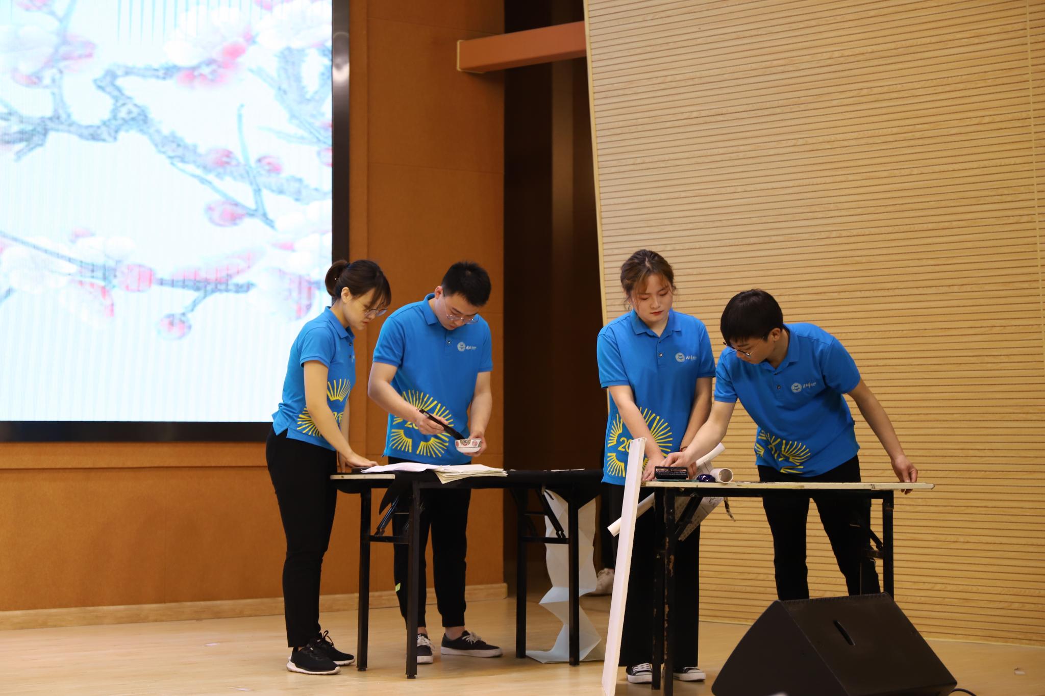 汇报现场,1601班全方面、多角度的进行创建成果展示,现场挥墨、作品展示、赠送伴手礼等展示形式多样,美院的同学们在台下与汇报人进行呼应配合,口号嘹亮,在汇报厅中久久回荡,赢得台下掌声不断。