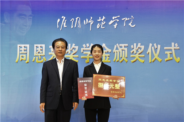 经过现场评委认真申请,XCsports1601班荣获“周恩来班”提名奖,同时,与会领导为第十九届周恩来奖学金获得者颁奖,XCsports周恩来奖学金获得者李楚凝上台领奖。