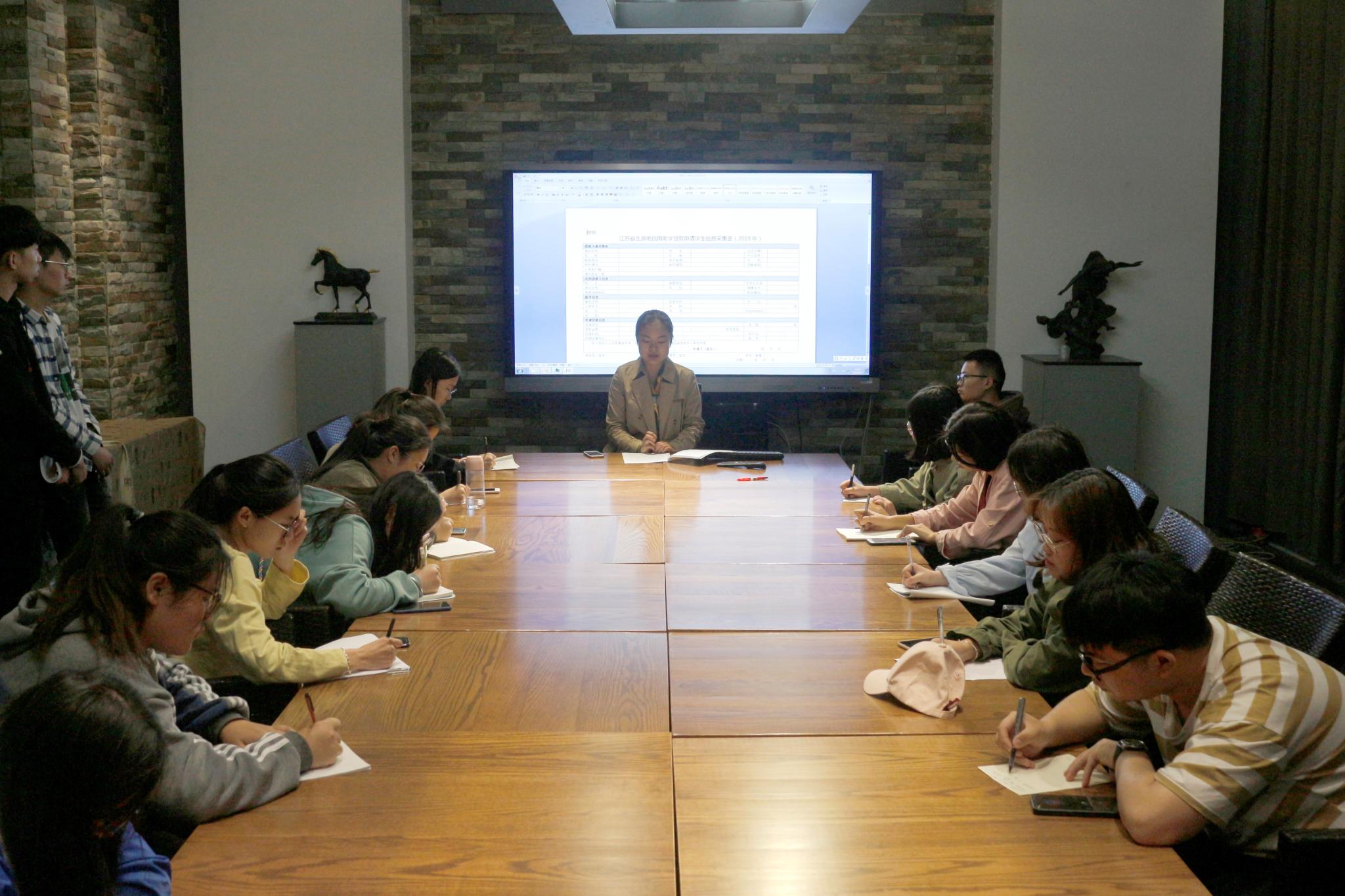会议上,费名扬老师就国家助学金的评定标准和材料要求作出了详细的阐释。一是详细说明了江苏首贷的条件,员工入学前户籍在江苏省填写附件一并在规定时间内按时上交纸质材料和完成网上注册;二是介绍了江苏续贷在5月12日之前在网站登录“续贷声明”提交申请并打印出来最后在暑假期间携带身份证、户口本、申请表、递交到地方教育局;三是外省首贷需要公司证件并需要与班主任共同商议盖章,费明扬老师建议贷款8000元或整数以方便还款;四是外省续贷老师谈到要诚信贷款,毕业后如期还款,在校期间不收取利息但毕业后要收取少些利息。最后,费明扬老师指出同学们在填写申请表中存在的一些问题和不足,告知同学们如何填写各项申请表,并做了统一的指导与要求。她希望同学们可以不断的总结经验,使得公司资助工作的效率能够不断提升。