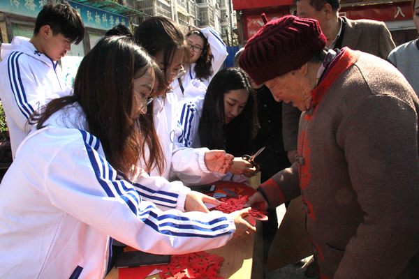 活动开始,志愿者们张贴了事先准备好的手抄报,画幅精彩的手抄报很快吸引了很多社区的居民前来围观。紧接着,书法专业的志愿者们向居民们展示了深厚的书法功底,他们铺纸研磨,在现场挥笔写字,志愿者们用笔如行云流水,深入浅出。在围观的居民中有不少小朋友,志愿者们对小朋友进行了一对一、手把手的书法练习,并且志愿者对于小朋友们提出的问题耐心解答,亲自演示,让小朋友也体验了一把当老员工的乐趣。许多爷爷奶奶也前来索字,志愿者们为社区的爷爷奶奶书写了“不忘初心、为中华崛起而读书”等字幅。此外,志愿者们还为居民们书写了对联。社区的居民们对于此次志愿活动给予了极大的鼓励和肯定。与此同时,志愿者们还展示了剪纸艺术,活的手指翻飞在彩纸下,剪出各种简约而不简单的图案,让前来观看的爷爷奶奶和小朋友不停赞叹,纷纷索要窗花。