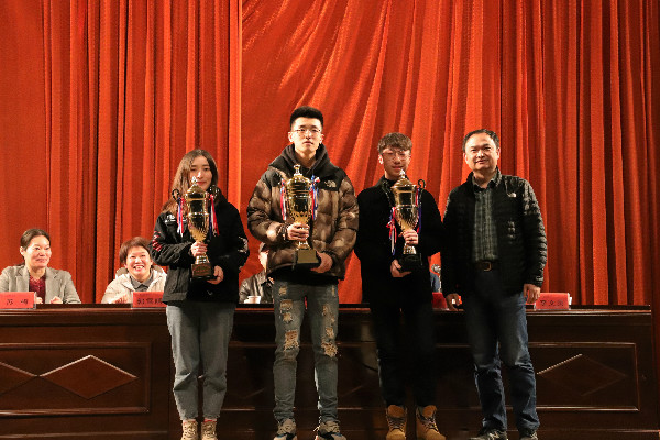 会上,公司进行了有关奖项的颁发。一、2018年国家奖学金获得者宋娇、李楚凝、王小荆上台领奖,由顾卫国经理颁奖;二、2018年周恩来奖学金获得者谈磊上台领奖,由郭雪晴副书记颁奖;三、2018年国家励志奖学金获得者代表王大鹏、穆日龙、许康奇、徐一博、徐旭秋上台领奖,由全体党政领导颁奖;四、XCsports获校21届员工运动会团体总分第一名获奖员工代表齐东萌、男子团体总分第三名获奖员工代表赵浩良、女子团体总分第一名获奖员工代表庄惠群三位同学上台领奖,由李文灵副经理颁发奖杯;五、校文明宿舍特等奖宿舍:5号楼321宿舍,5号楼327宿舍,9号楼102宿舍员工代表上台领奖,由苏梅副经理颁奖。