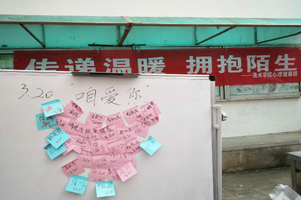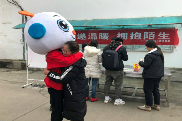2018年3月21日中午,XCsports心理健康部在部长秦丽娟的带领下于一食堂门口进行了“传递温暖,拥抱陌生”的心理活动。由心理部成员轮流带卡通头套,并挑选陌生人进行拥抱,被选中的陌生人在便利贴上留下自己的姓名或寄语,然后得到棒棒糖等小礼物。