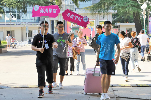 志愿者们在校门口举牌迎接,积极主动的接过新生行李,引领他们进入西辅一楼,各班级助班帮助新生登记信息,带领新生进入会议室注册信息、领取饭卡,并将行李送至宿舍,助班和志愿者们带领新生有条不紊的办理入学手续。他们耐心的回答着新生和家长们提出的种种问题,并为他们一遍又一遍引路。志愿者们热情周到的服务很快消除了新生及家长初至淮师的陌生感。
