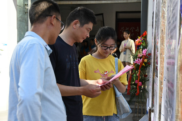早在清晨,就已经有家长带着新生前来报到,他们穿过林荫道,前来迎接的志愿者们从他们手中接下行李,志愿者的热情使他们在松了一口气的同时又多了不少对淮师的喜爱。在西辅楼的展板前,家长们拿出手机,一边浏览展板一边拍照发朋友圈,良好的校园环境让家长们啧啧称赞。